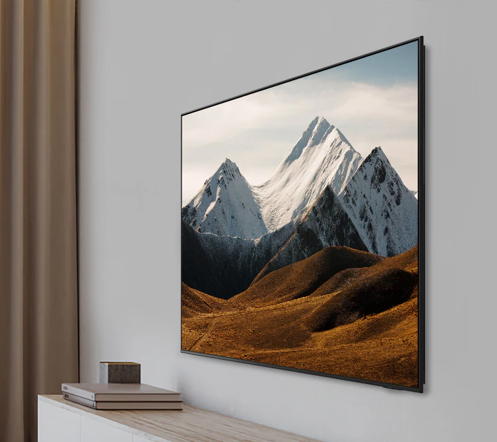 Samsung’s ultra slim design of the TV fits harmoniously with its surroundings.